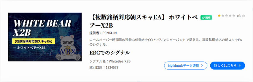 今回、私のEA「WhiteBear X2B」のシグナルが配信されるのは、EBCが展開するEA企画サイト「EBC EAナビ」です。